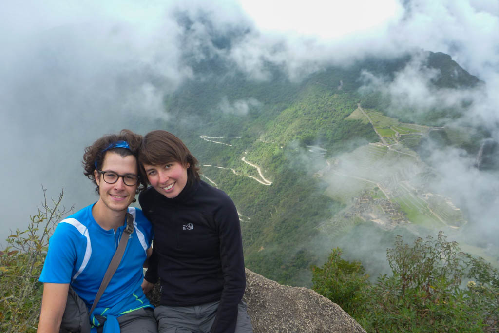 C'est la montagne en face, qui permet d'observer le Machu Picchu de haut, dans toute sa splendeur. L'ascension est difficile physiquement (les marches sont hautes, incompréhensible sachant qu'ils étaient plus petits que les Quechuas) mais surtout psychologiquement pour les personnes qui ont peur du vide. Une personne de notre groupe nous a dit qu'elle avait du s'allonger 30 minutes en haut pour arrêter de trembler, et on voyait beaucoup de gens s'accrocher à tout ce qu'ils pouvaient avec des yeux exorbités… Il est vrai qu'il manque quelques mains courantes sur des marches de 30 cm de haut, 20cm de large, 10cm de profondeur (non un pied pointure 37 ne tient pas), et ce à flanc de montagne !
