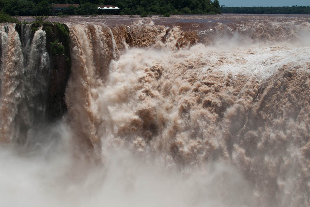 Pour revenir à ce qui nous intéresse, voici 2 photos des chutes vues du côté Brésilien (beaucoup d'autres dans la galerie picasa). L'eau est rouge à cause des fortes pluies dans l'état de Rio de Janeiro : le fleuve Iguacu traverse le Brésil, et à cause de la déforestation, les pluies entraînent avec elles de la terre (rouge ici), qui arrive finalement dans le fleuve.